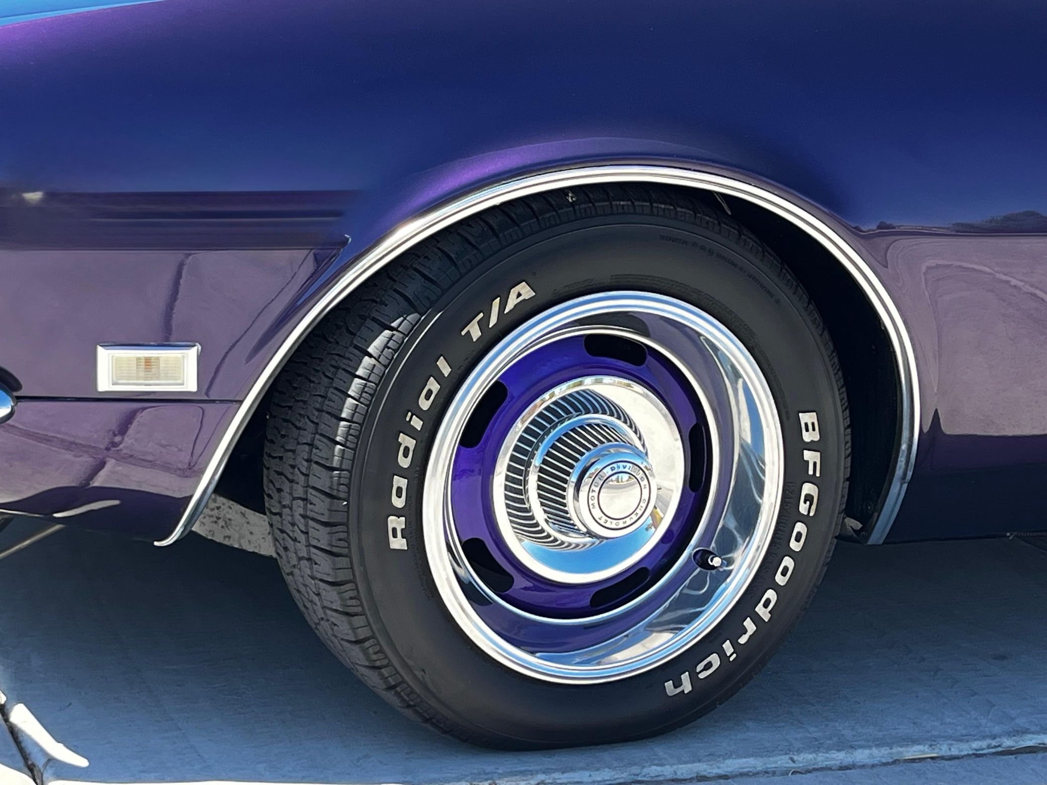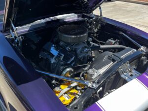 Power comes from a replacement 396 cubic-inch V8 engine, paired with a 4-speed manual transmission and rear-wheel drive.