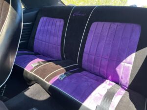 Cloth upholstery with purple accents