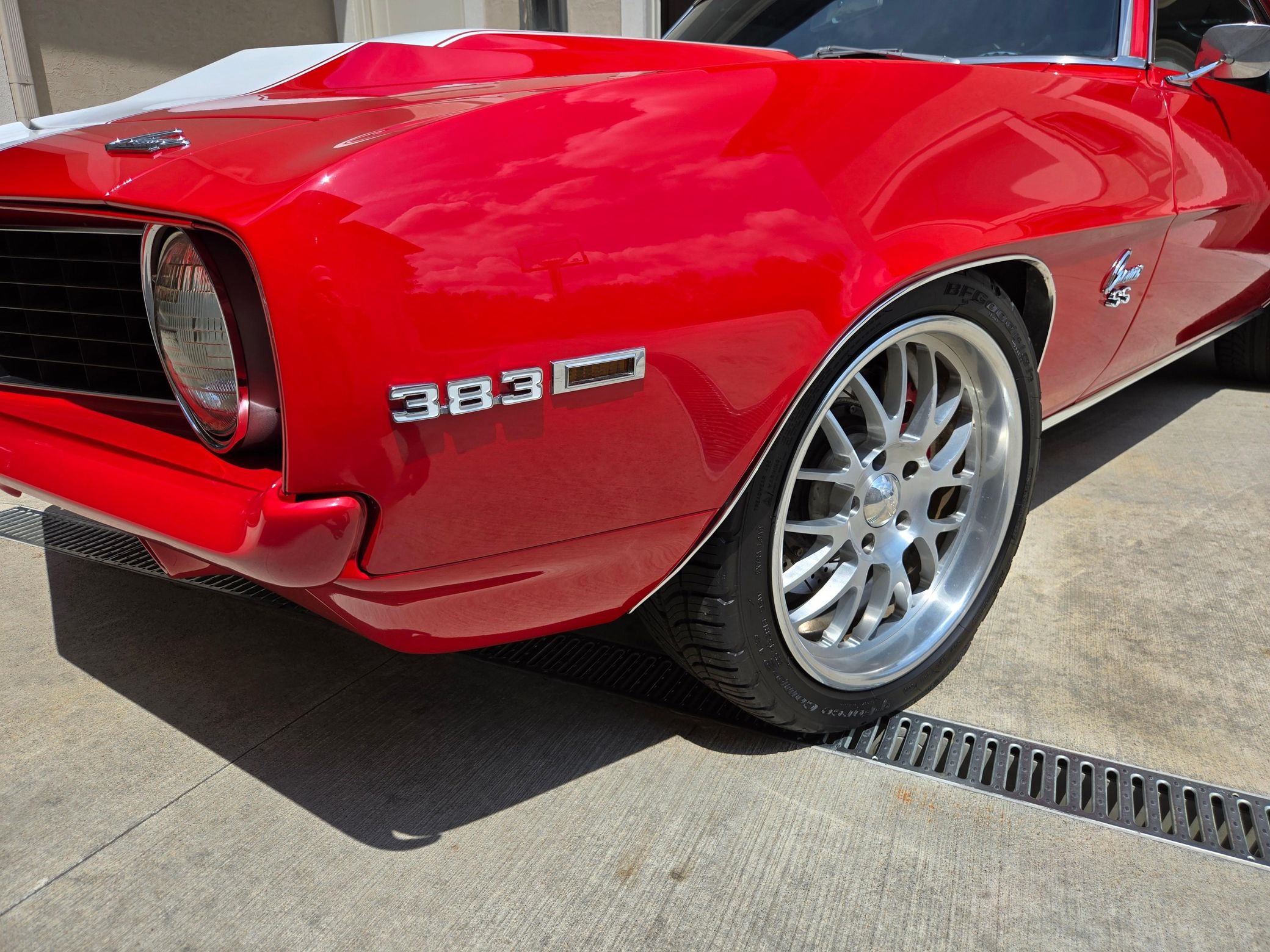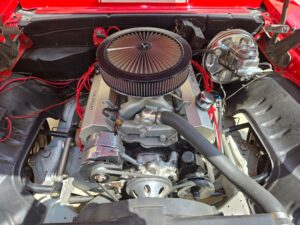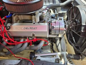 Power comes from a 6.3-liter (383ci) stroker V8, producing 382 horsepower and 361 lb-ft of torque, paired with a Tremec TKO 5-speed manual transmission driving the rear wheels.