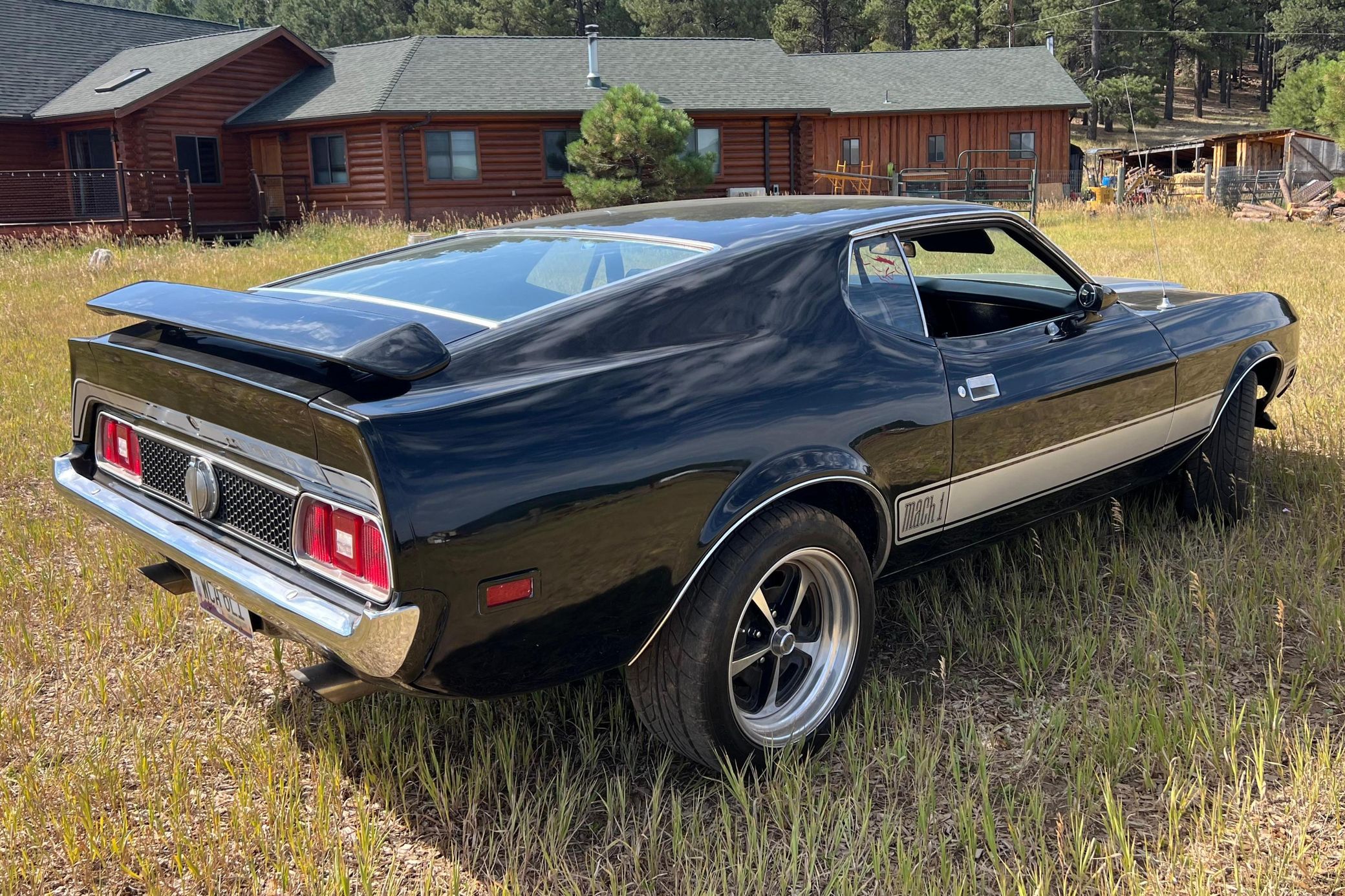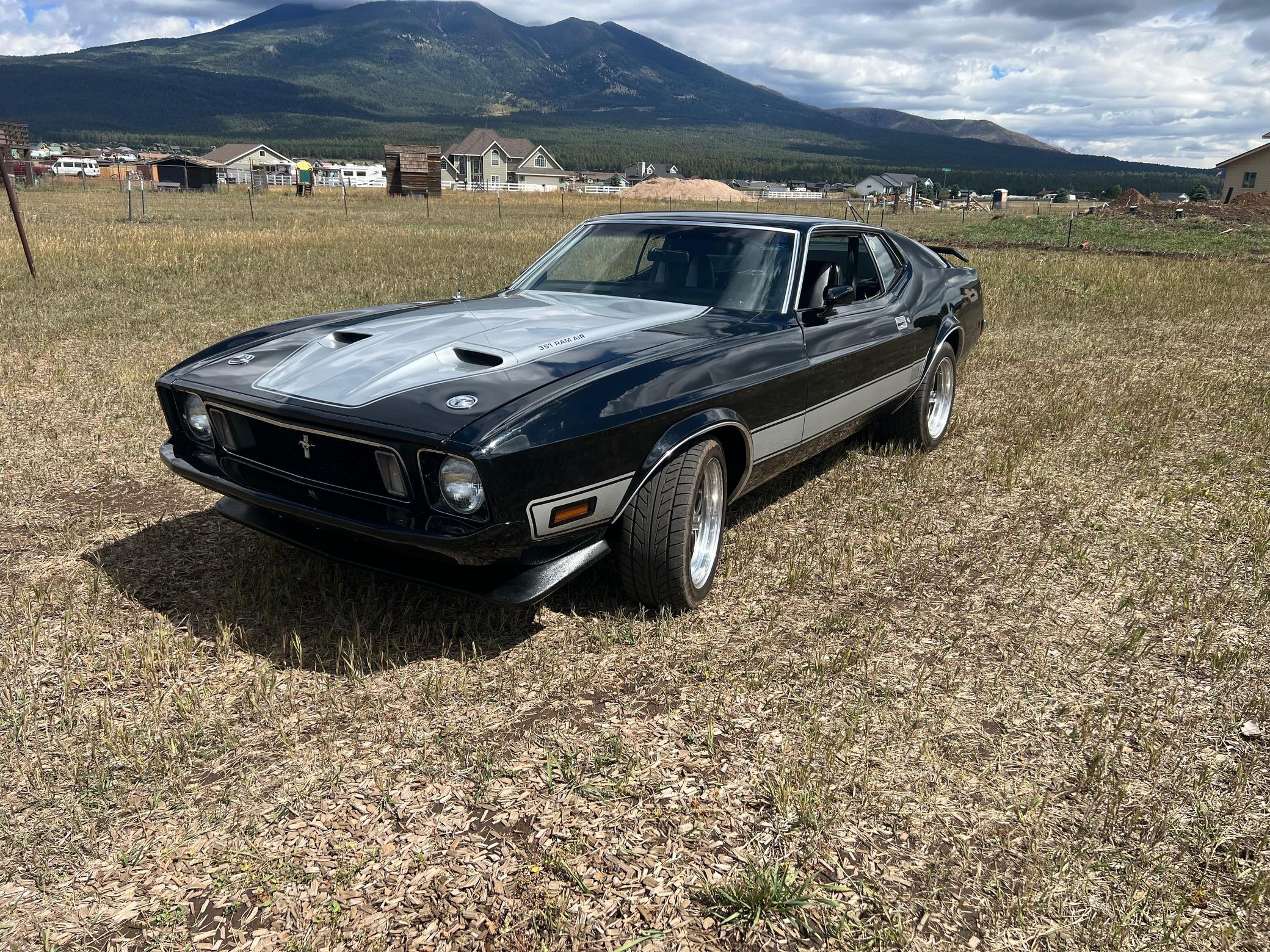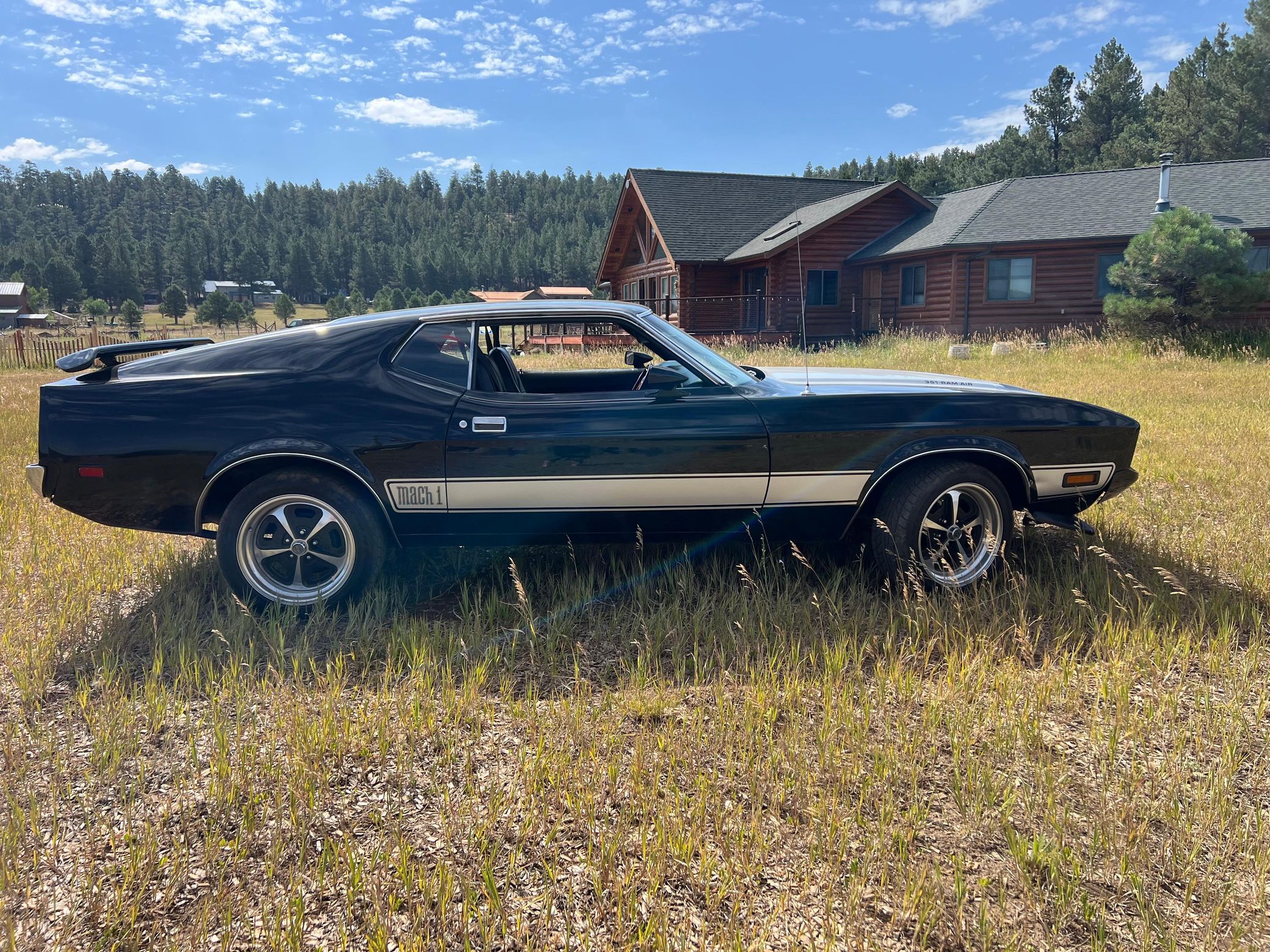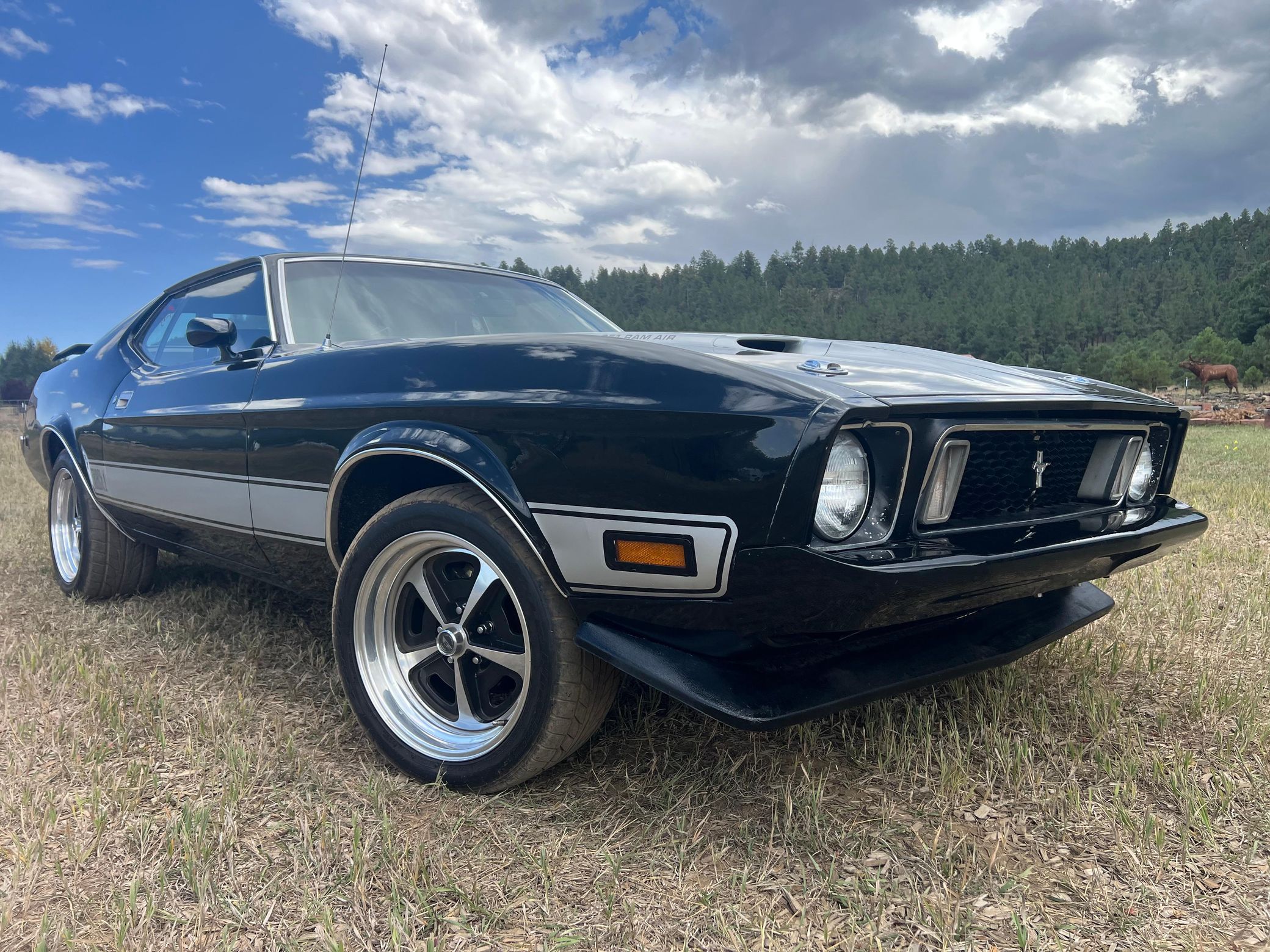 This 1973 Ford Mustang Mach 1 is a striking and performance-built example of the final model year of the original Mustang body style, finished in Black and Silver over a Black interior.