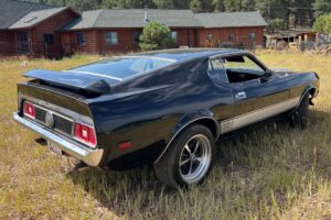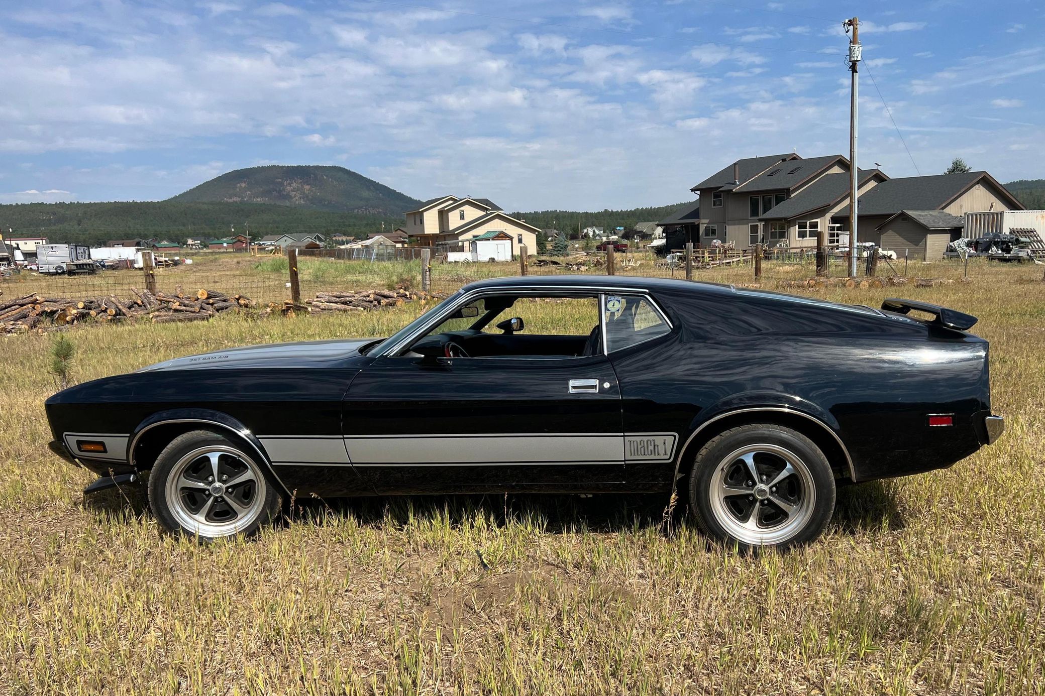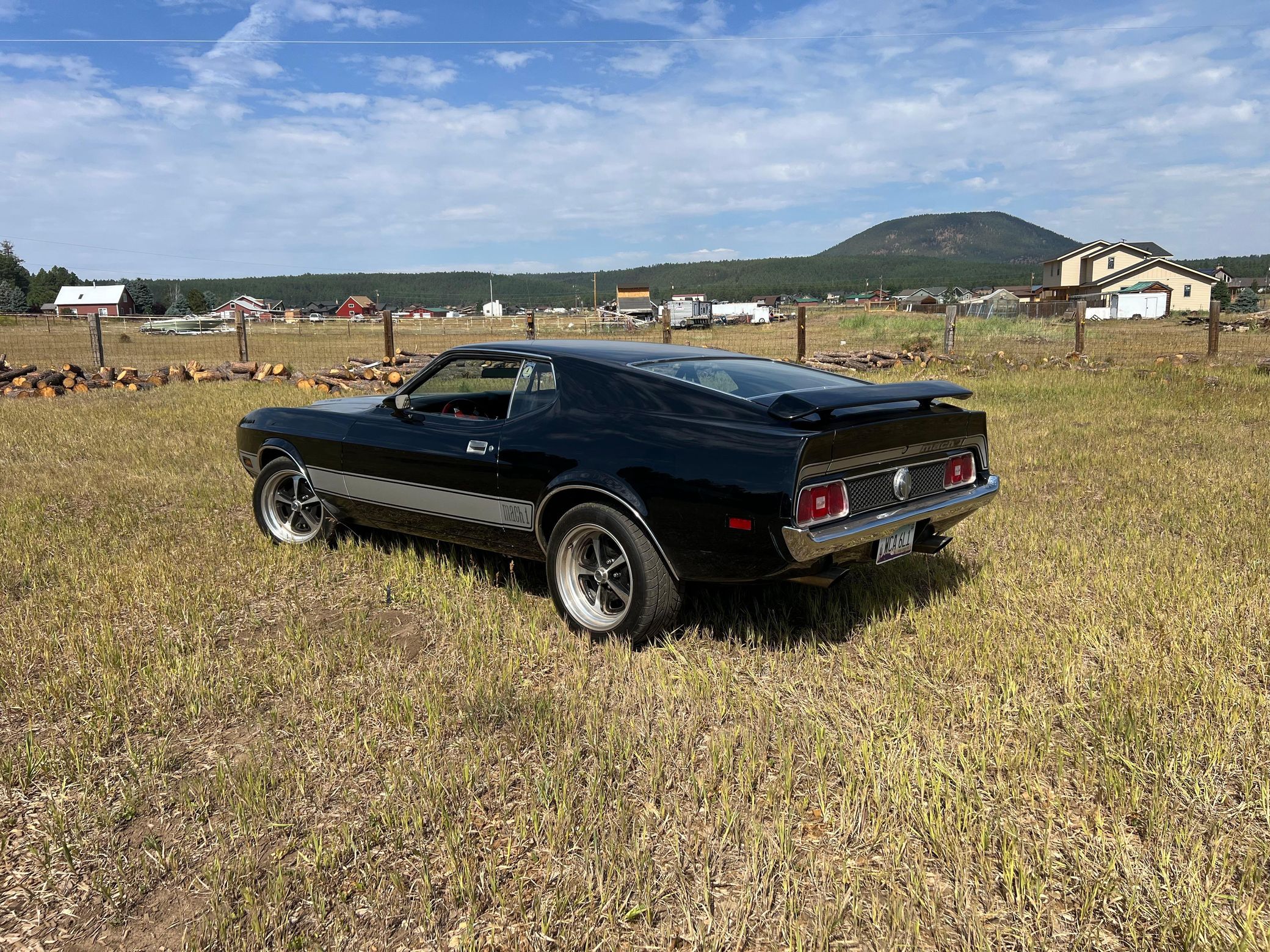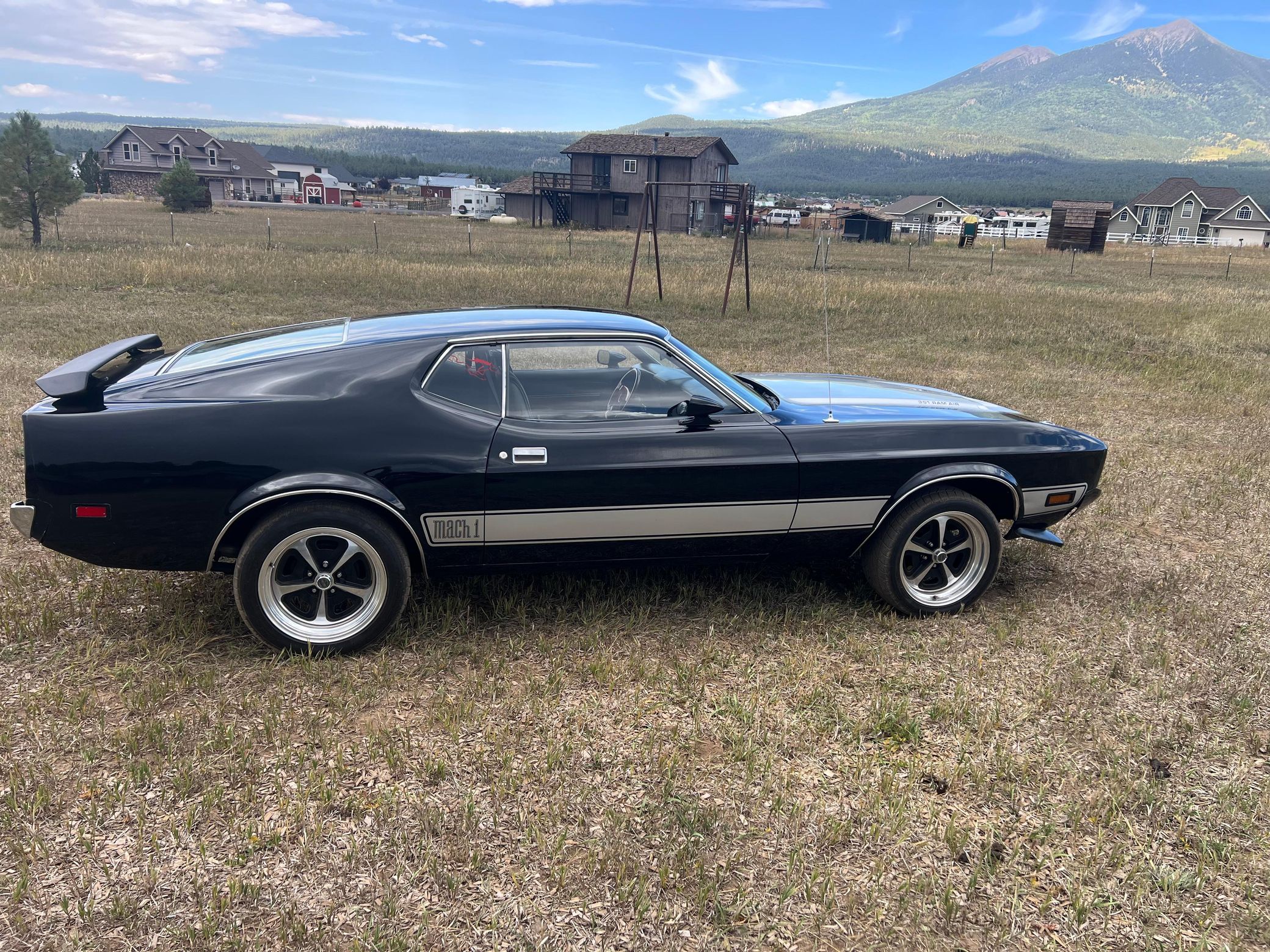 This 1973 Ford Mustang Mach 1 is a striking and performance-built example of the final model year of the original Mustang body style, finished in Black and Silver over a Black interior.