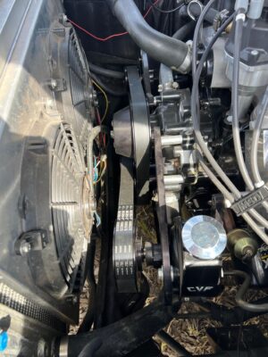 Power comes from a 408ci stroker V8, dyno-rated at approximately 445 horsepower and 515 lb-ft of torque, paired with a 4-speed manual transmission sending power to the rear wheels.