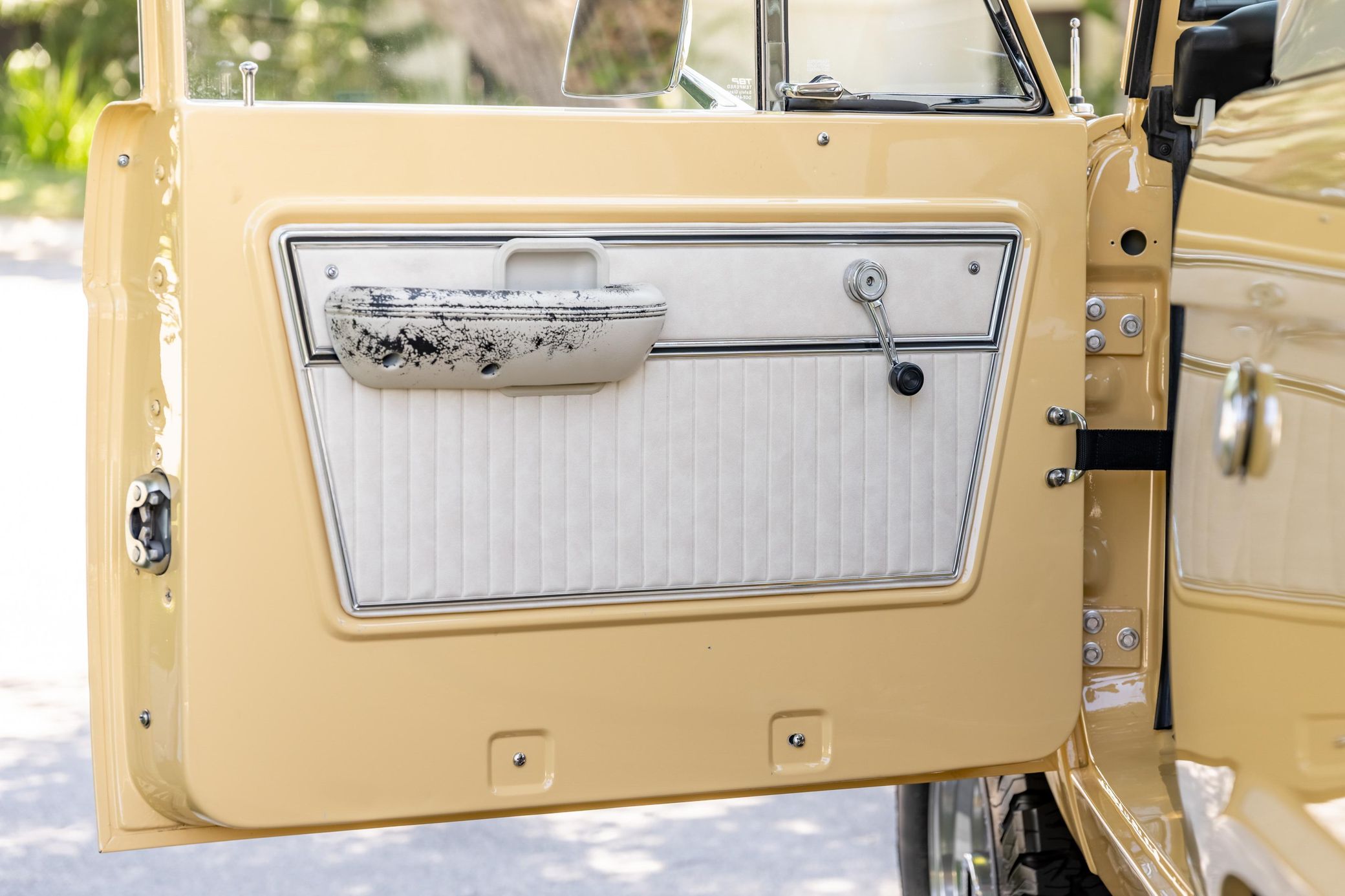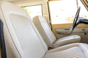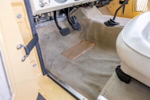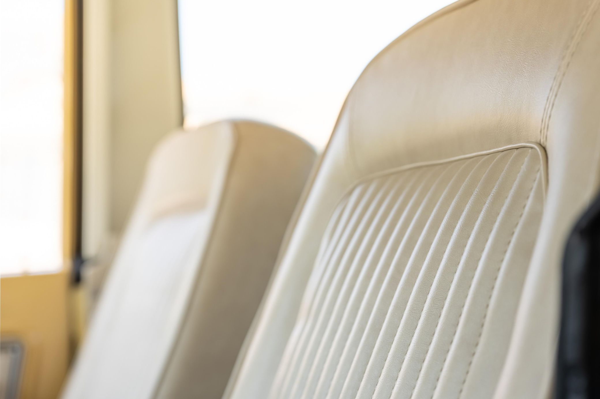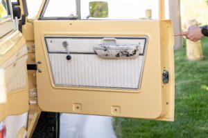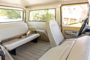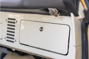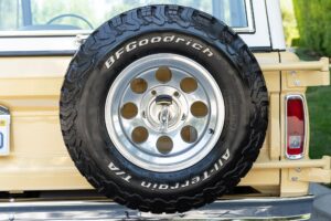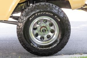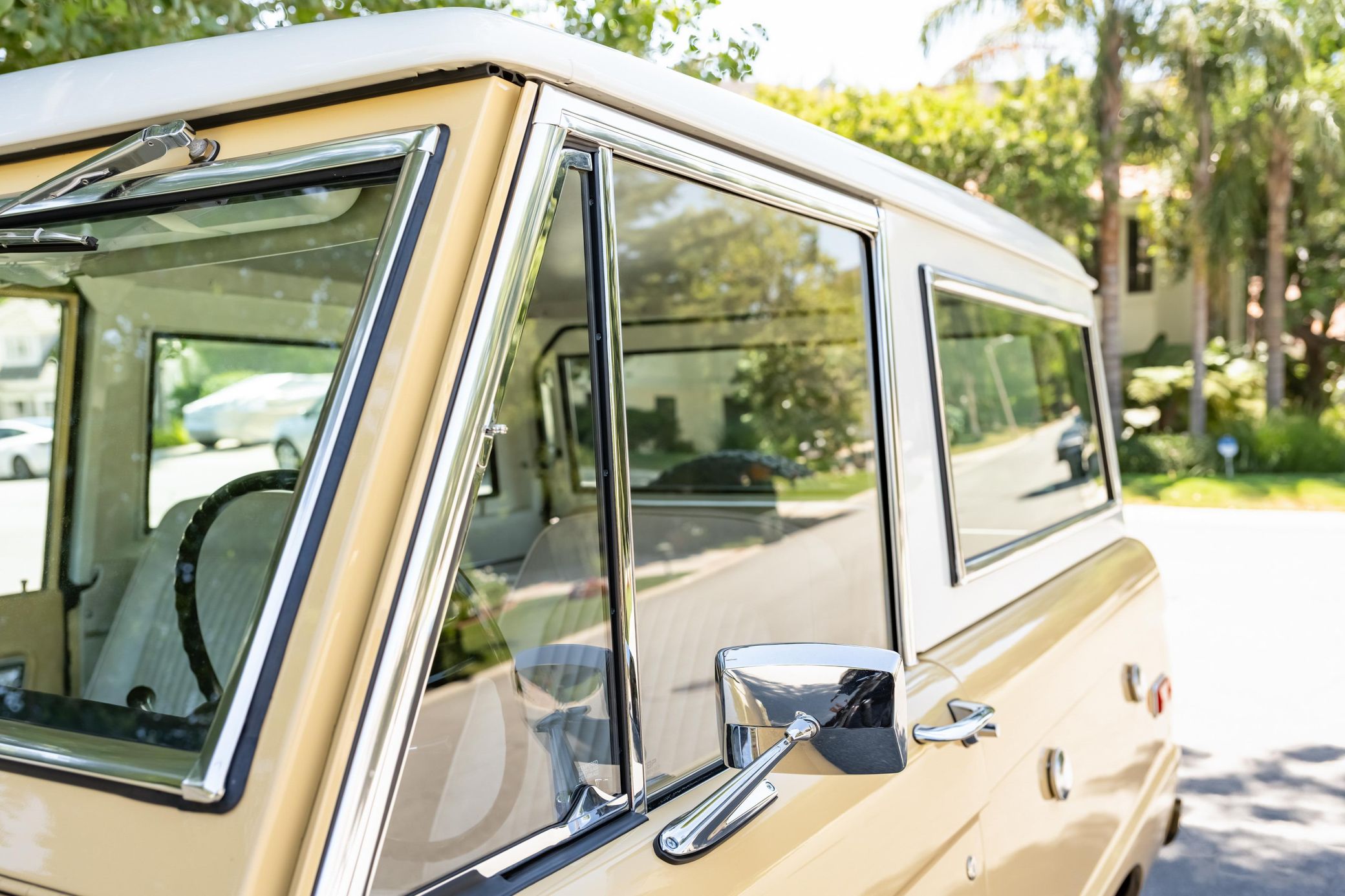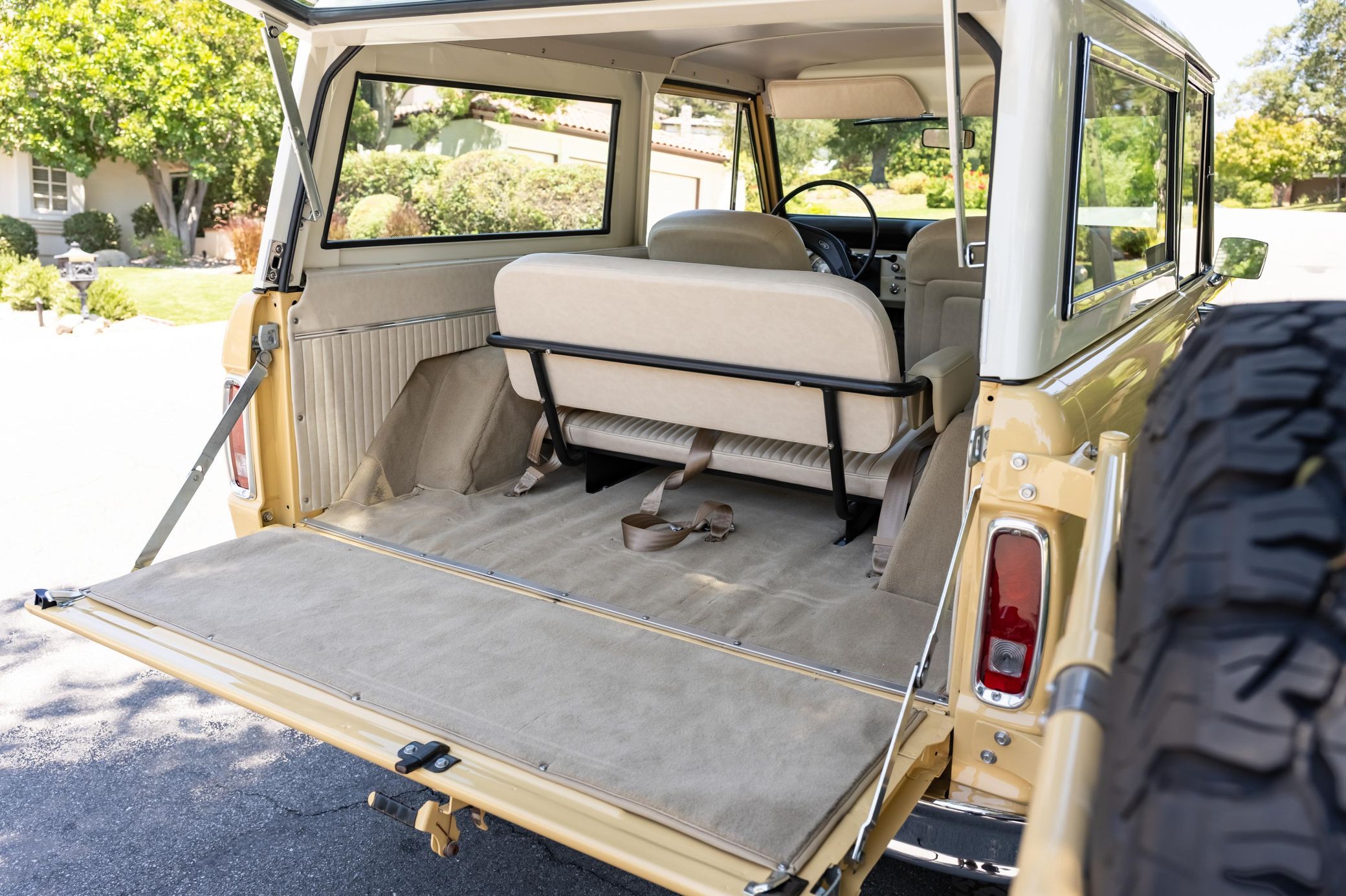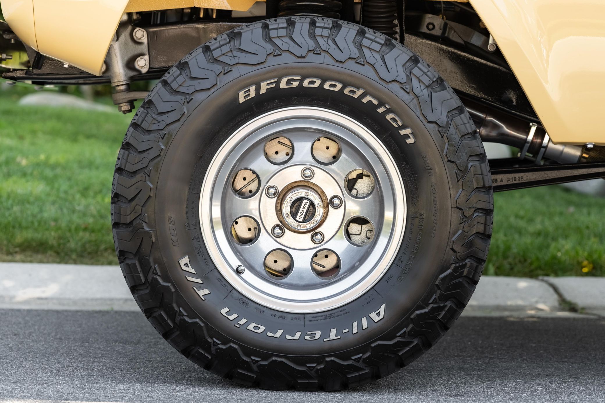 This 1975 Ford Bronco is a beautifully restored example of Ford’s original off-road icon, finished in Vineyard Gold with a white removable hardtop and Parchment Rosette interior. It underwent a frame-off restoration less than 1,000 miles ago.