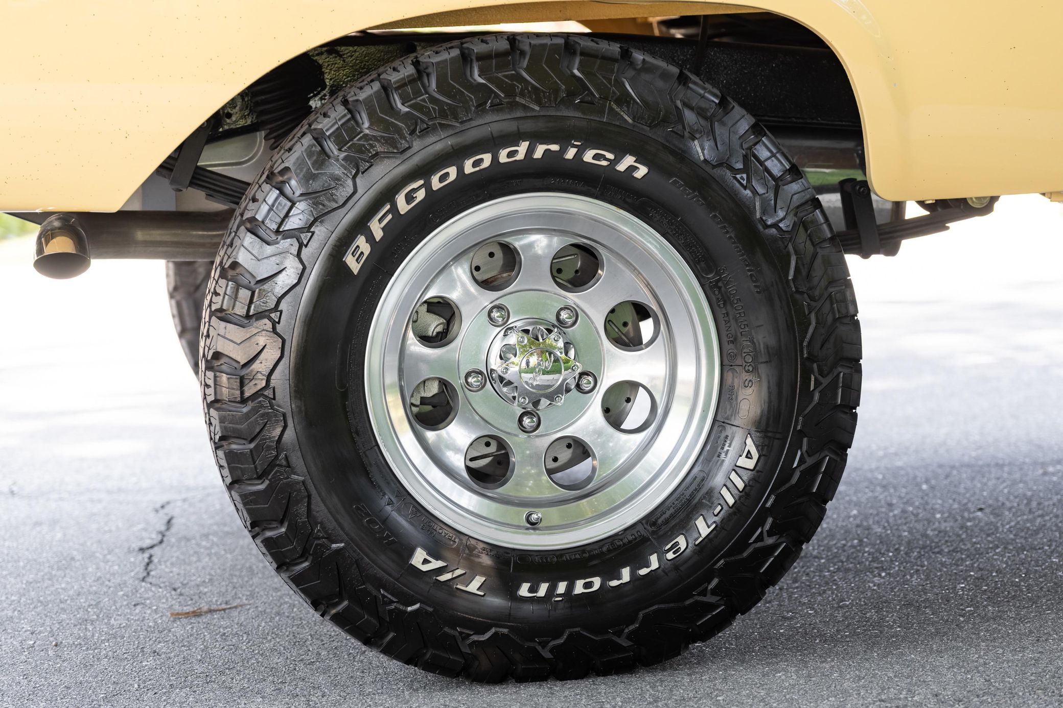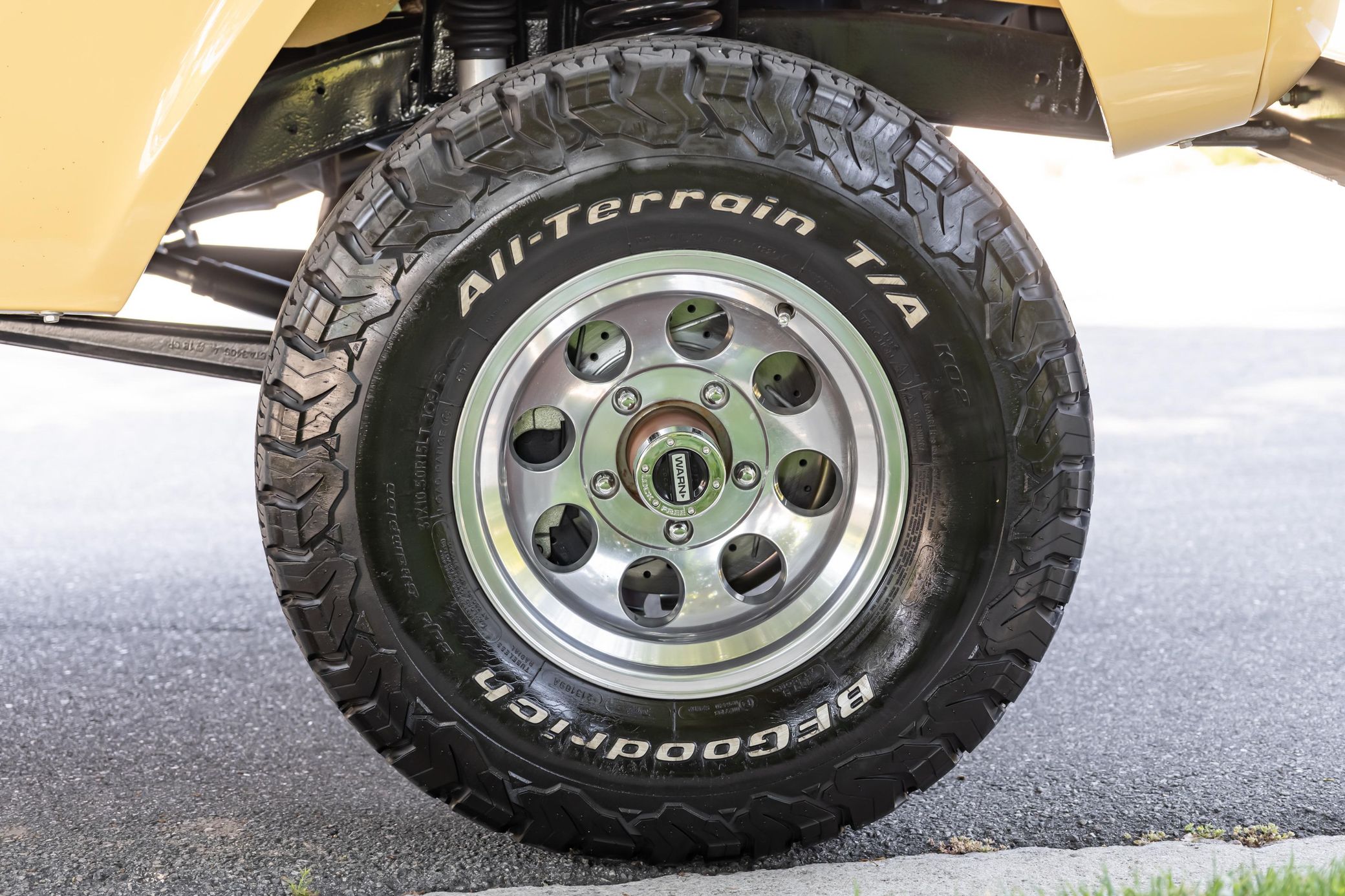 Power is provided by a 302-cubic-inch V8, paired with a 3-speed manual transmission and 2-speed transfer case, sending power to either the rear wheels or all four via WARN manual locking front hubs.