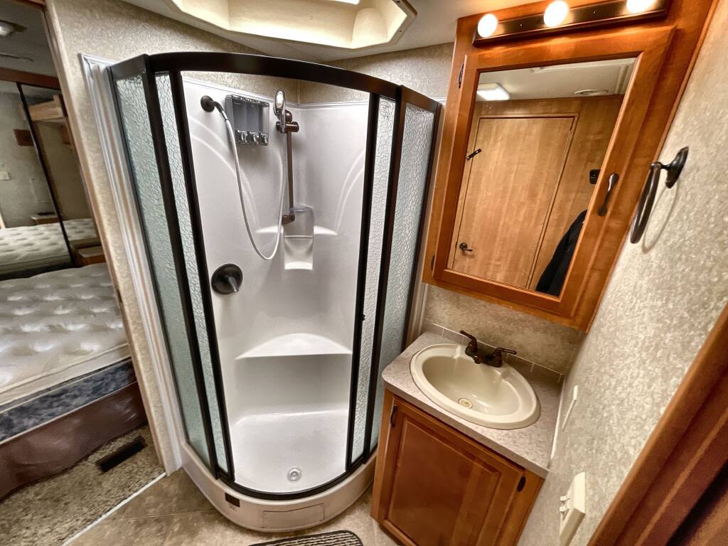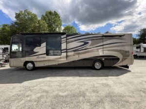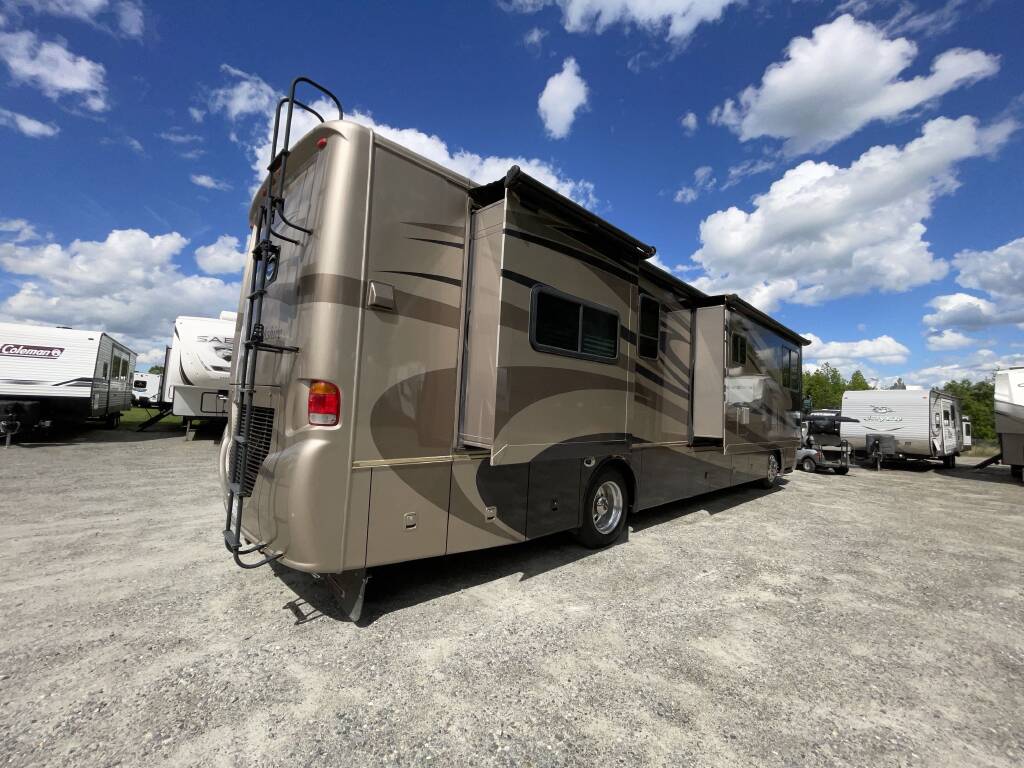 The 2009 Forest River Berkshire 360QS combines low mileage, spacious living, and proven diesel performance in one luxurious package. Built on the reliable Freightliner XC Raised Rail chassis, this 40-foot Class A diesel pusher offers an exceptional ride and residential-style comfort for full-time travelers or seasonal adventurers alike.
