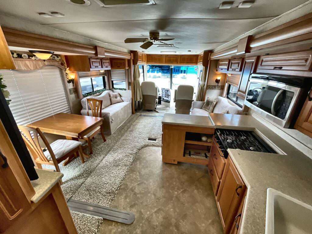 The low mileage reflects gentle use, and the interior surfaces, cabinetry, and furnishings show minimal wear.