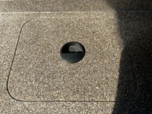 Exterior fiberglass retains a smooth finish with no fading; the interior is clean and well-preserved.