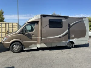Built on the reliable Sprinter 3500 diesel chassis, this 25-foot coach delivers the ideal balance of maneuverability, fuel efficiency, and upscale comfort — perfect for couples or solo travelers.