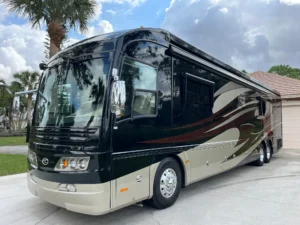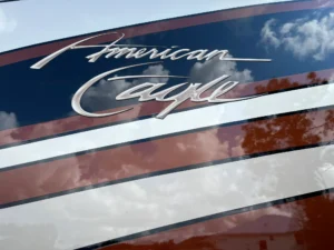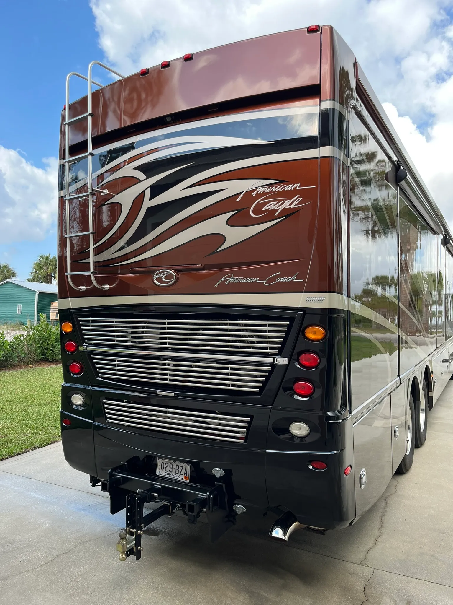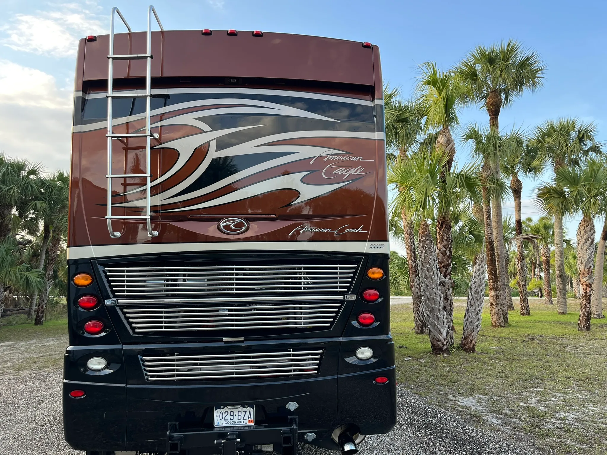 The 2012 American Eagle 45T embodies American Coach’s flagship craftsmanship and engineering excellence — a luxurious 45-foot diesel pusher built on the proven Spartan K3 chassis and powered by a 15.0-liter Cummins ISX turbodiesel producing 600 horsepower and 1,950 lb-ft of torque.
