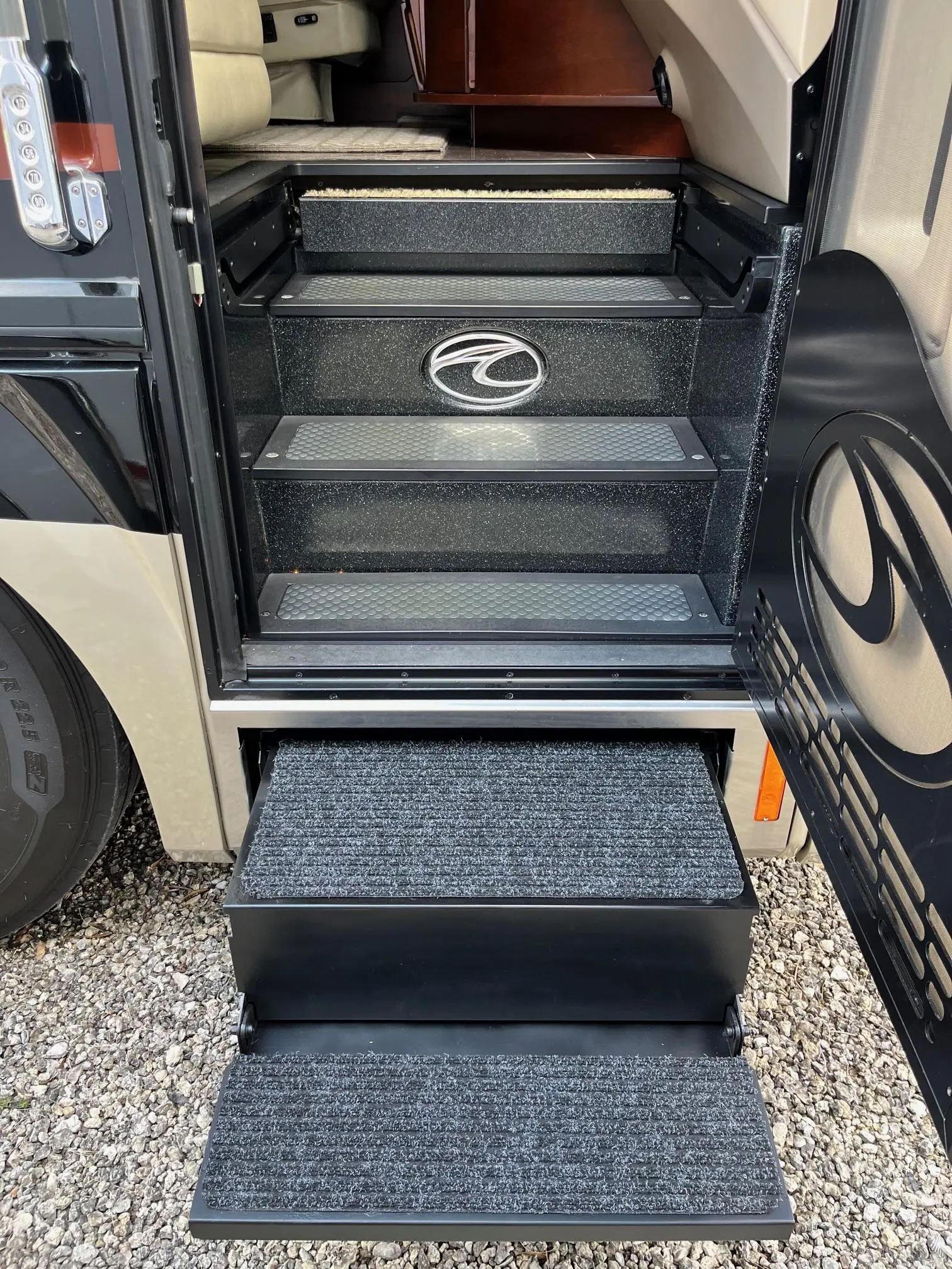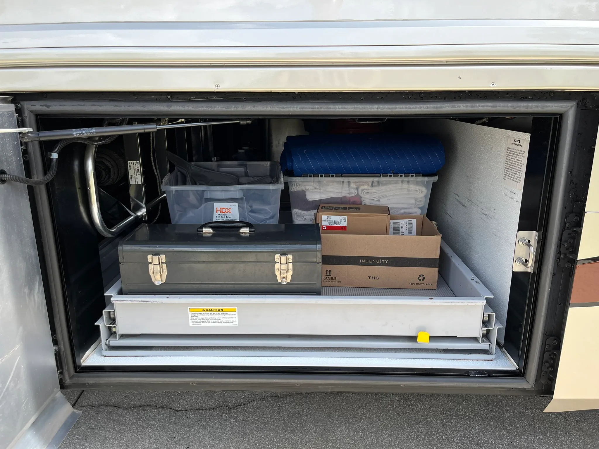 This coach has received consistent care and updates, including recent tire, battery, A/C, and generator service in 2024–2025.