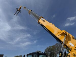 12,000 lb lift capacity with 56 ft reach – handles large materials effortlessly