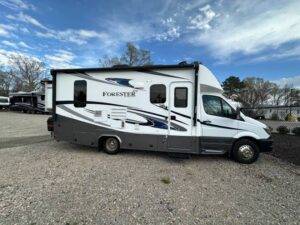 This 2019 Forest River Forester MBS 2401R is a refined Class C diesel motorhome built on the trusted Mercedes-Benz Sprinter chassis, offering excellent fuel economy, smooth handling, and long-distance comfort. Its dual slide-out design creates a spacious and open interior while maintaining an easy-to-drive, under-25-foot footprint.