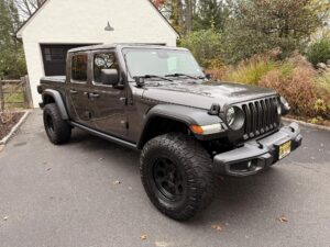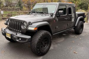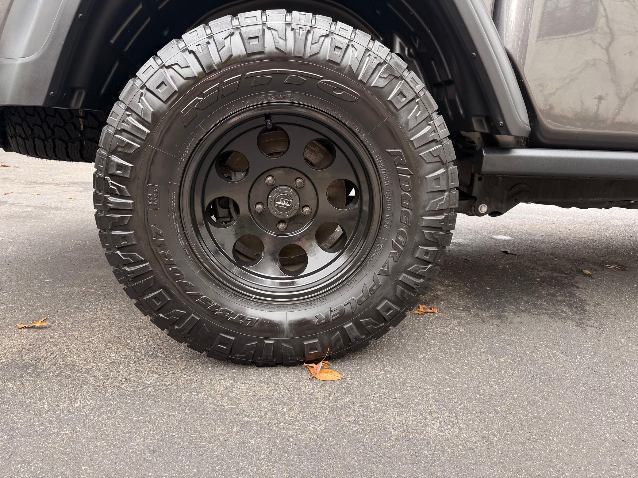 This Gladiator has received light modifications consisting of 17-inch Pro Comp wheels wrapped in Nitto Ridge Grappler tires, along with a tonneau cover.