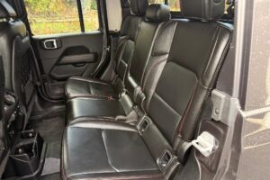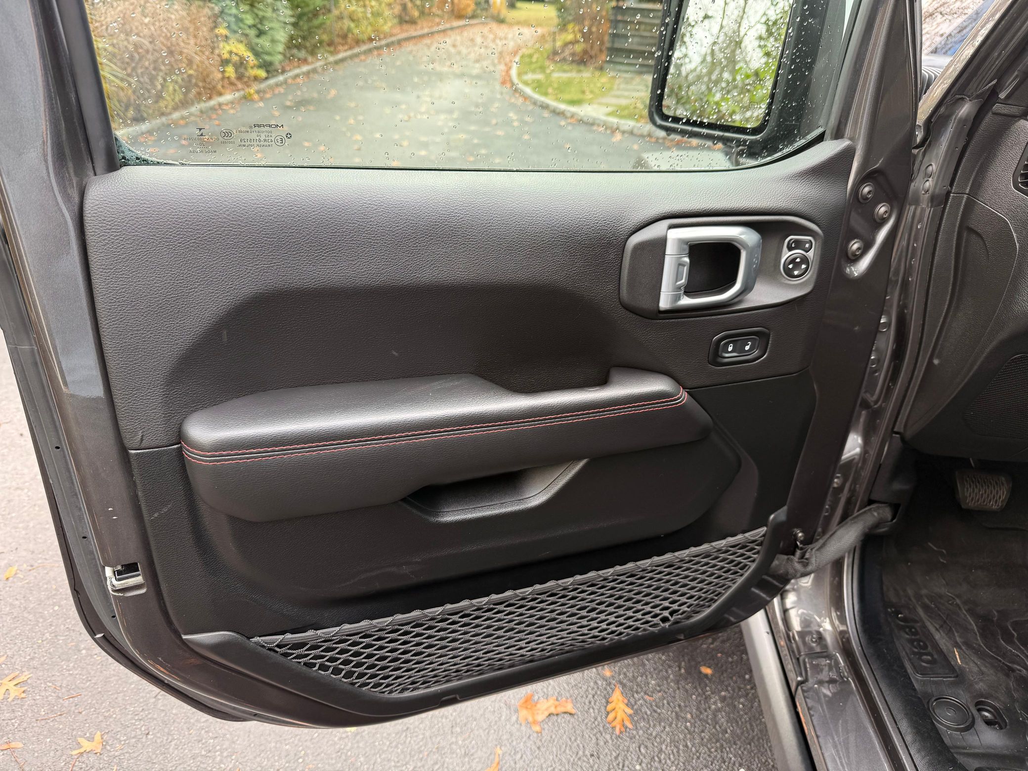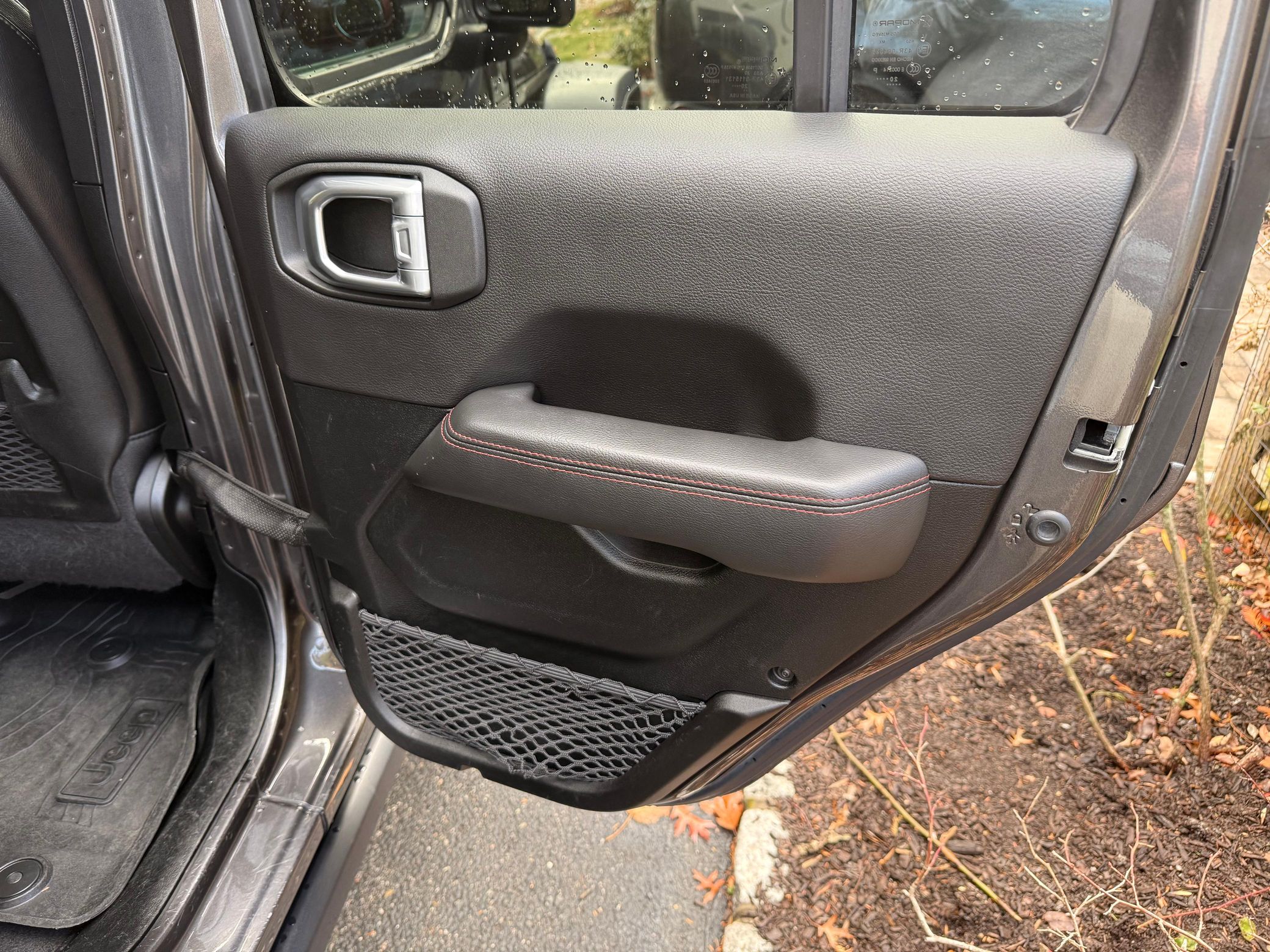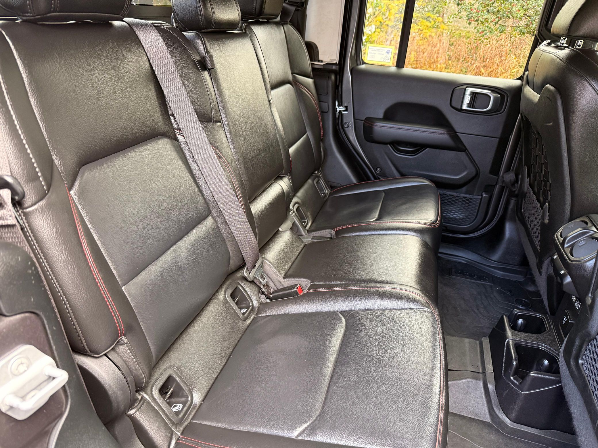 2021 Jeep Gladiator Rubicon 4×4, finished in Granite Crystal Metallic with a black interior. The included Carfax history report lists no accidents or mileage discrepancies.